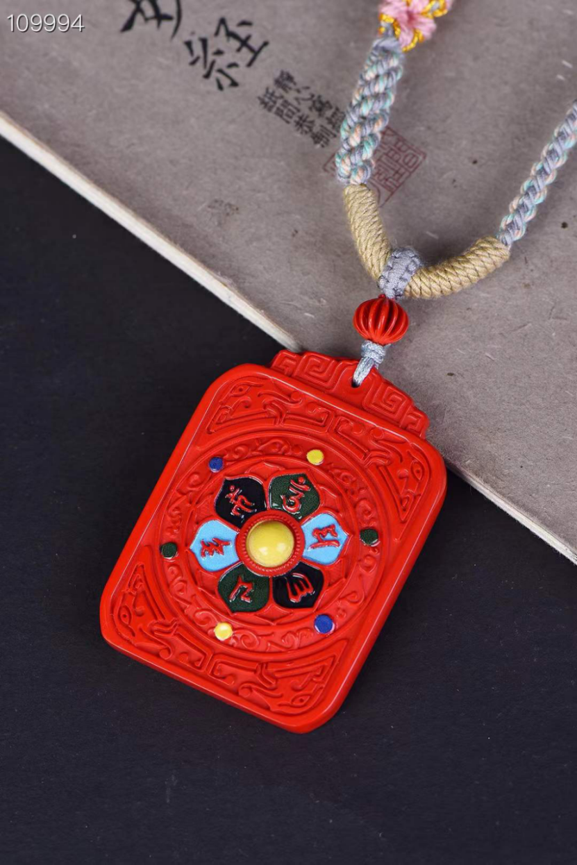 原礦紅砂壓磨+滴油燒製工藝,純手工製作。尺寸38* 53 *7mm,寓意辟邪轉運、安神靜氣。