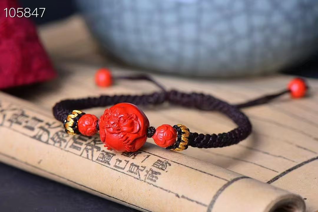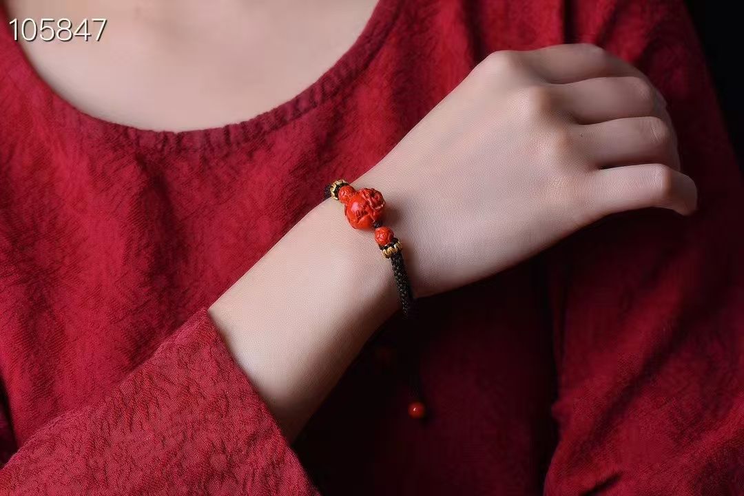 高‮量含‬硃砂天然紅砂十二生肖單圈手鍊