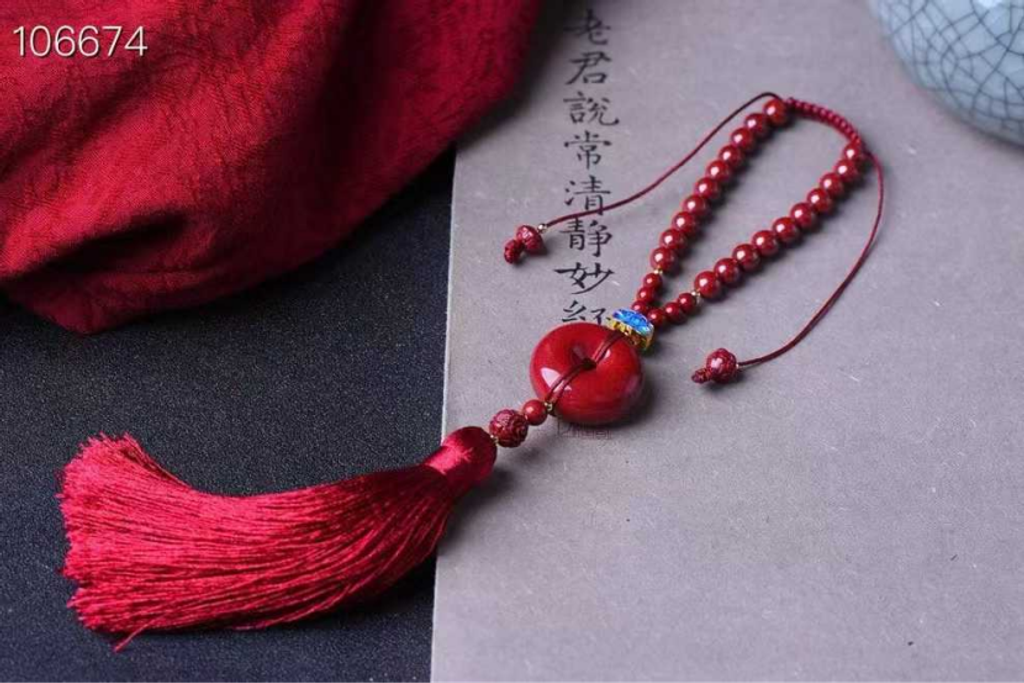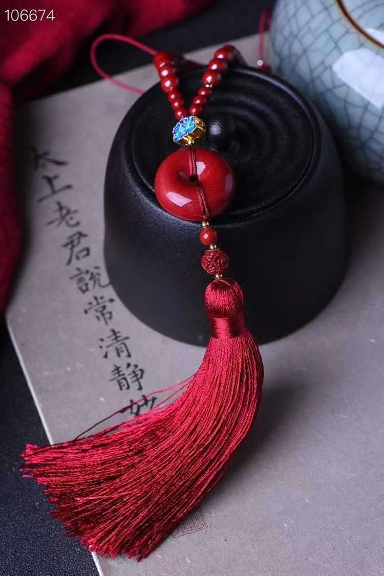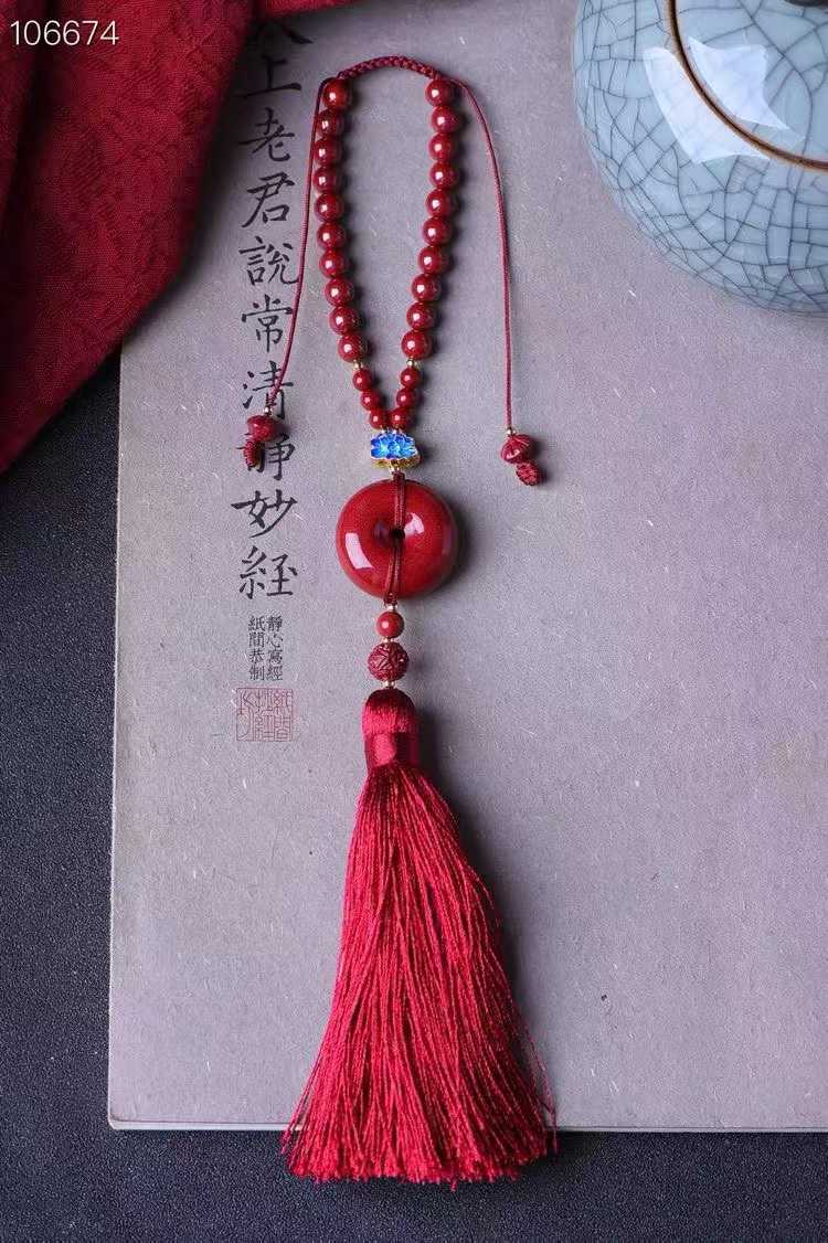 核心純手工+原礦壓磨:高含量硃砂材質,平安扣寓意辟邪轉運、安神靜氣,克重約54g,車掛優選!