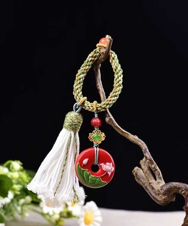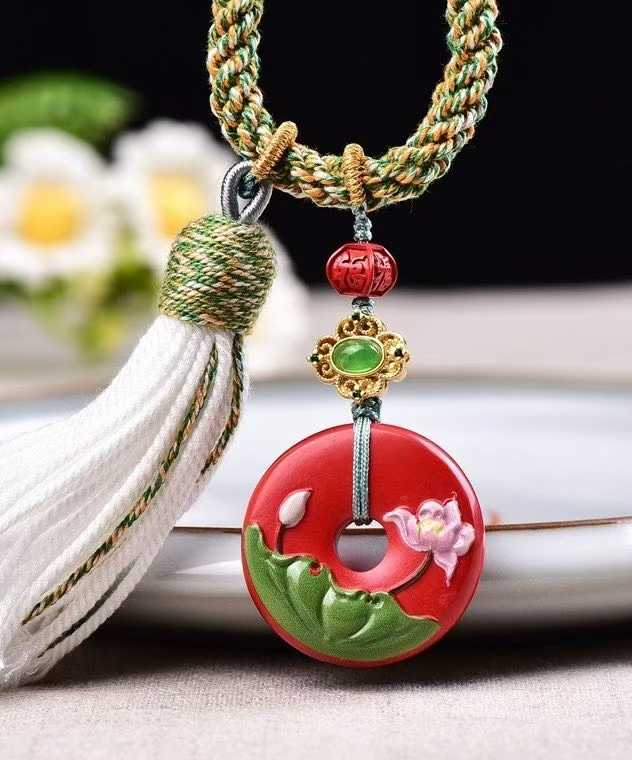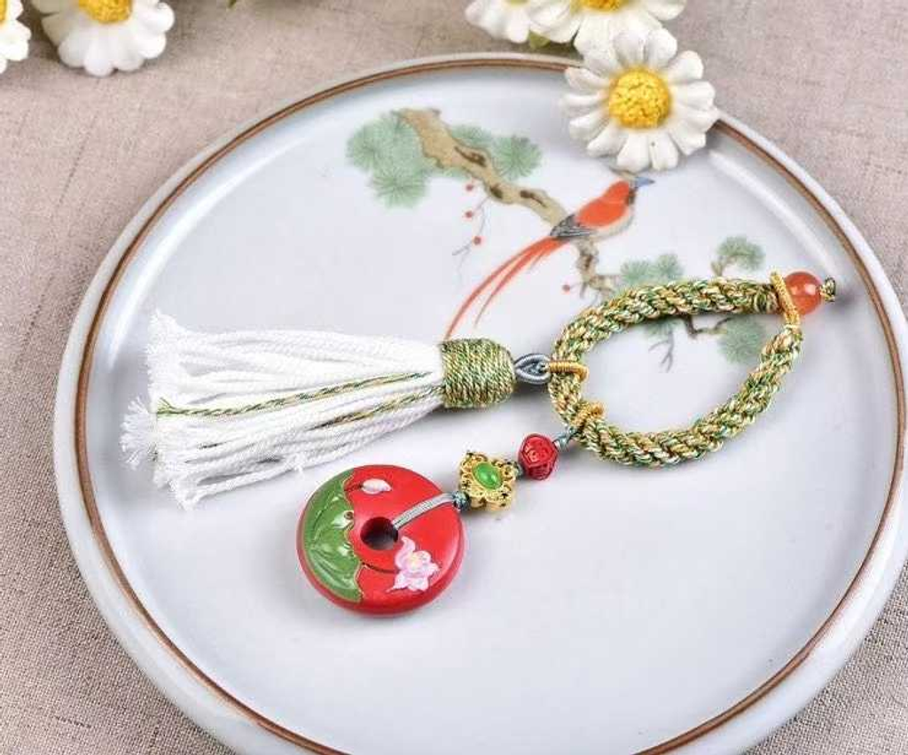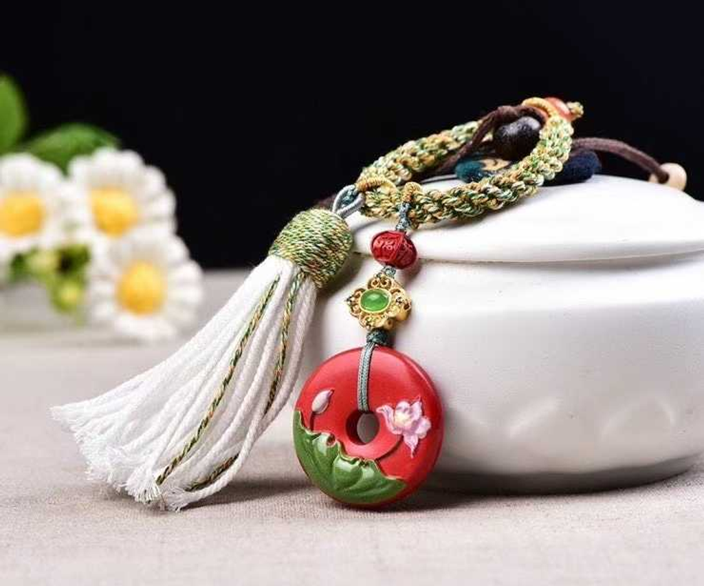 核心蓮花平安扣+純手工編織+精緻彩繪,30×9.5mm尺寸、約25g紮實克重,質量保證長期有貨! 原礦紅砂加持化解太歲、辟邪消災、助眠通血脈,蓮花寓意平安潔淨,款式百搭可做包掛/鑰匙扣