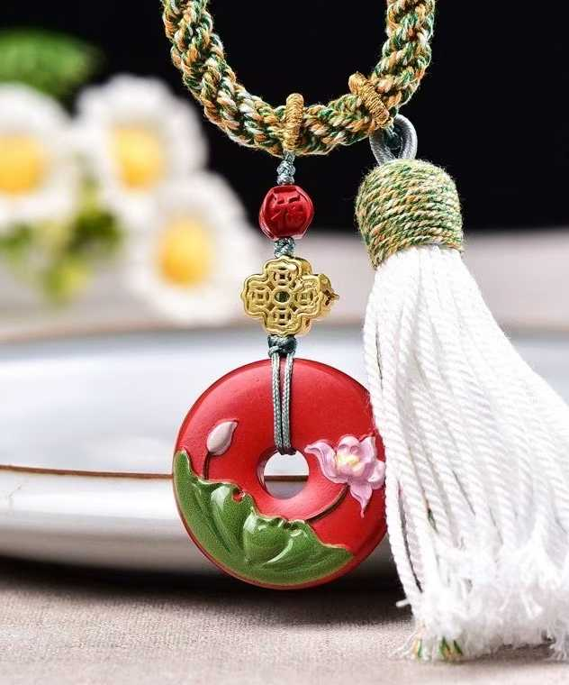 高含量天然原礦紅砂彩繪蓮花平安扣包掛