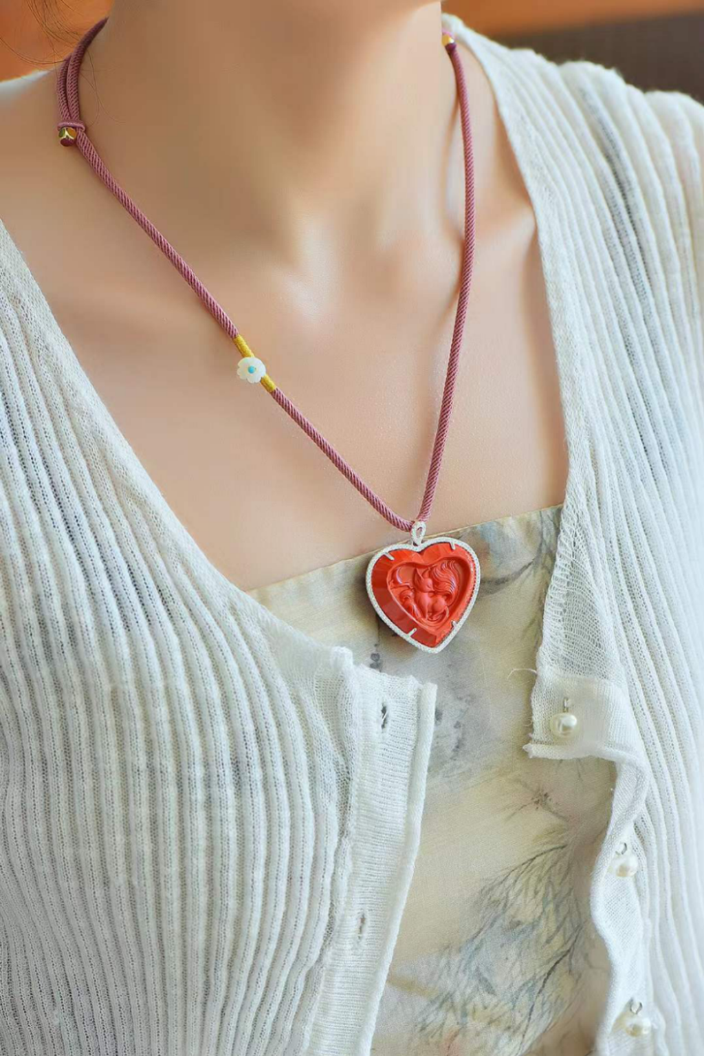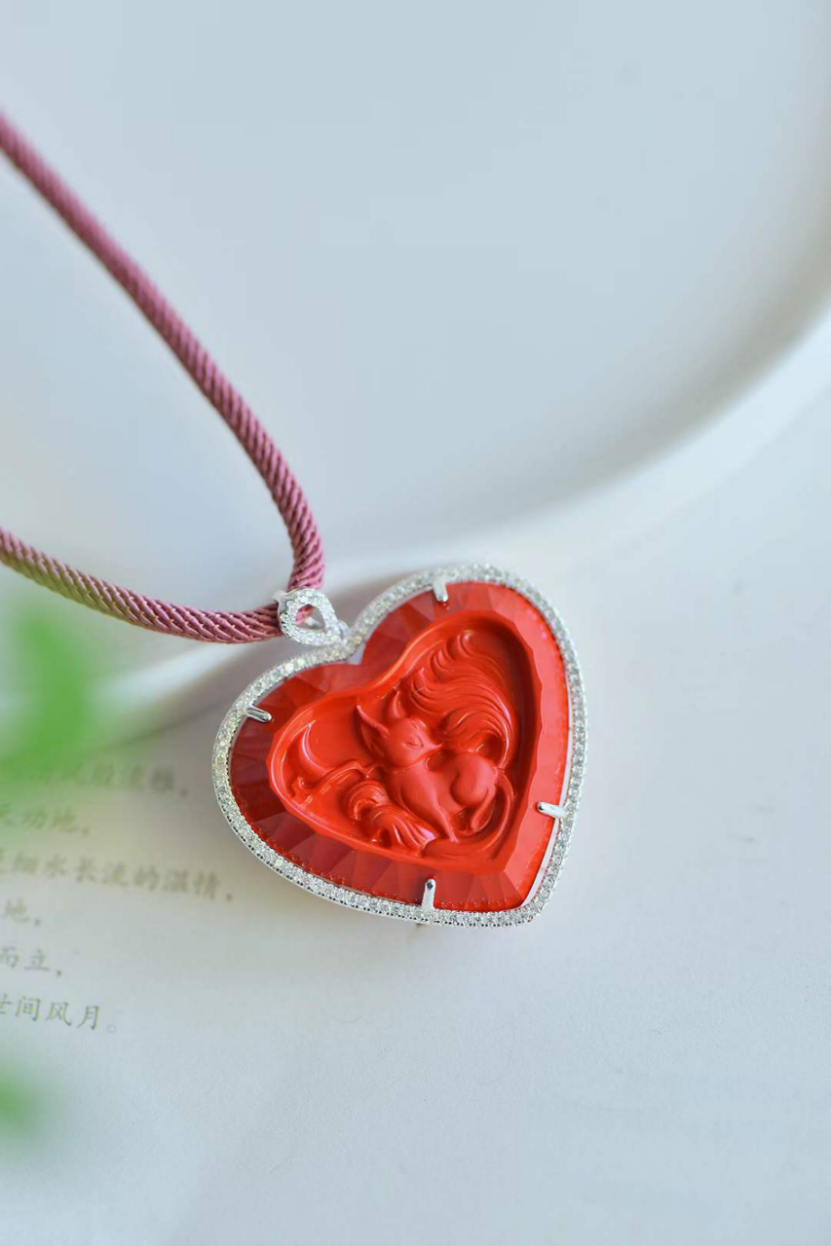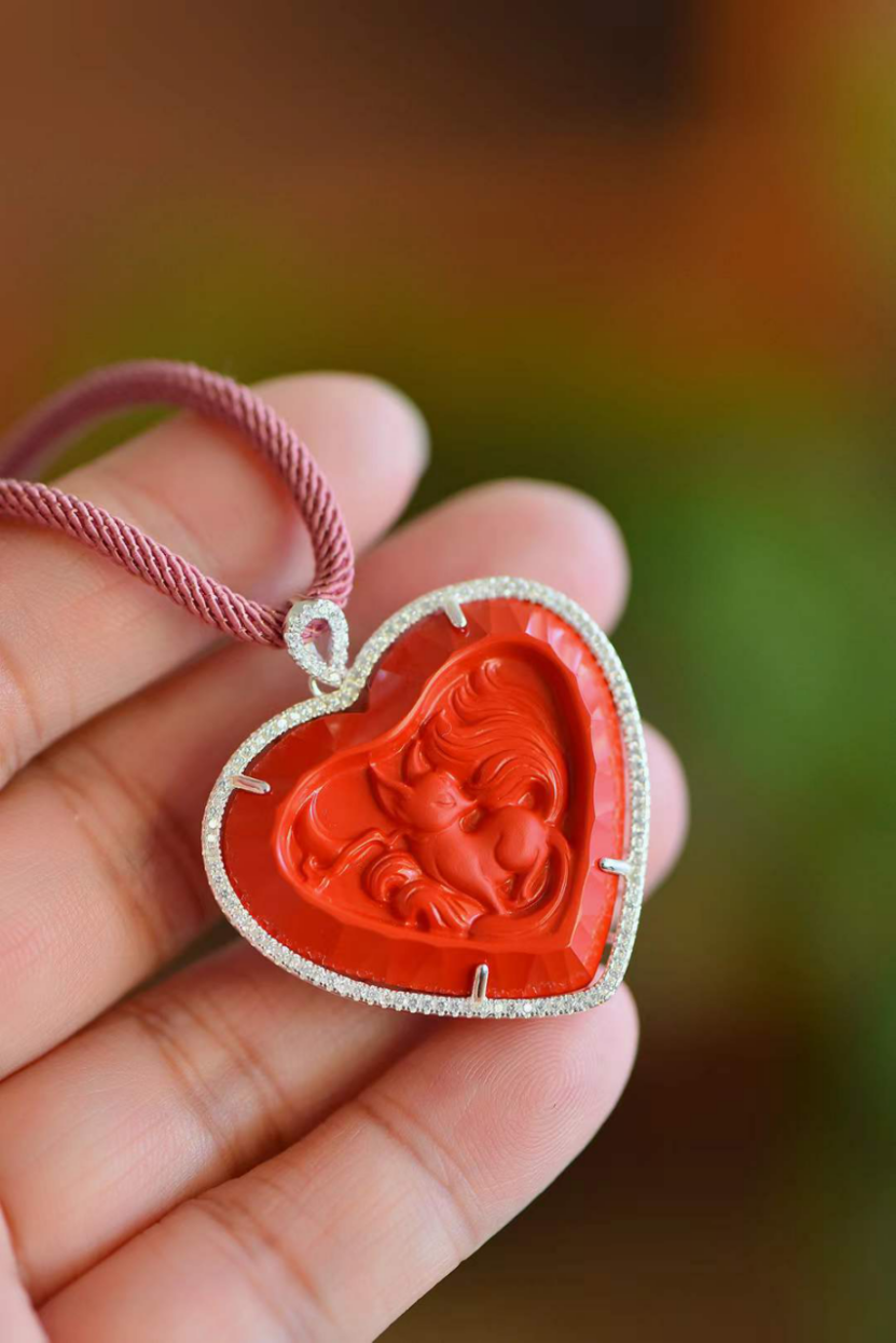 原材料爲純硃砂300目礦粉,細微處見珍品品質,長期佩戴,可安神靜氣,亦可辟邪轉運,純銀s925鑲嵌。