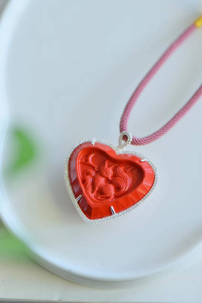高含量天然硃砂紅砂九尾狐吊墜