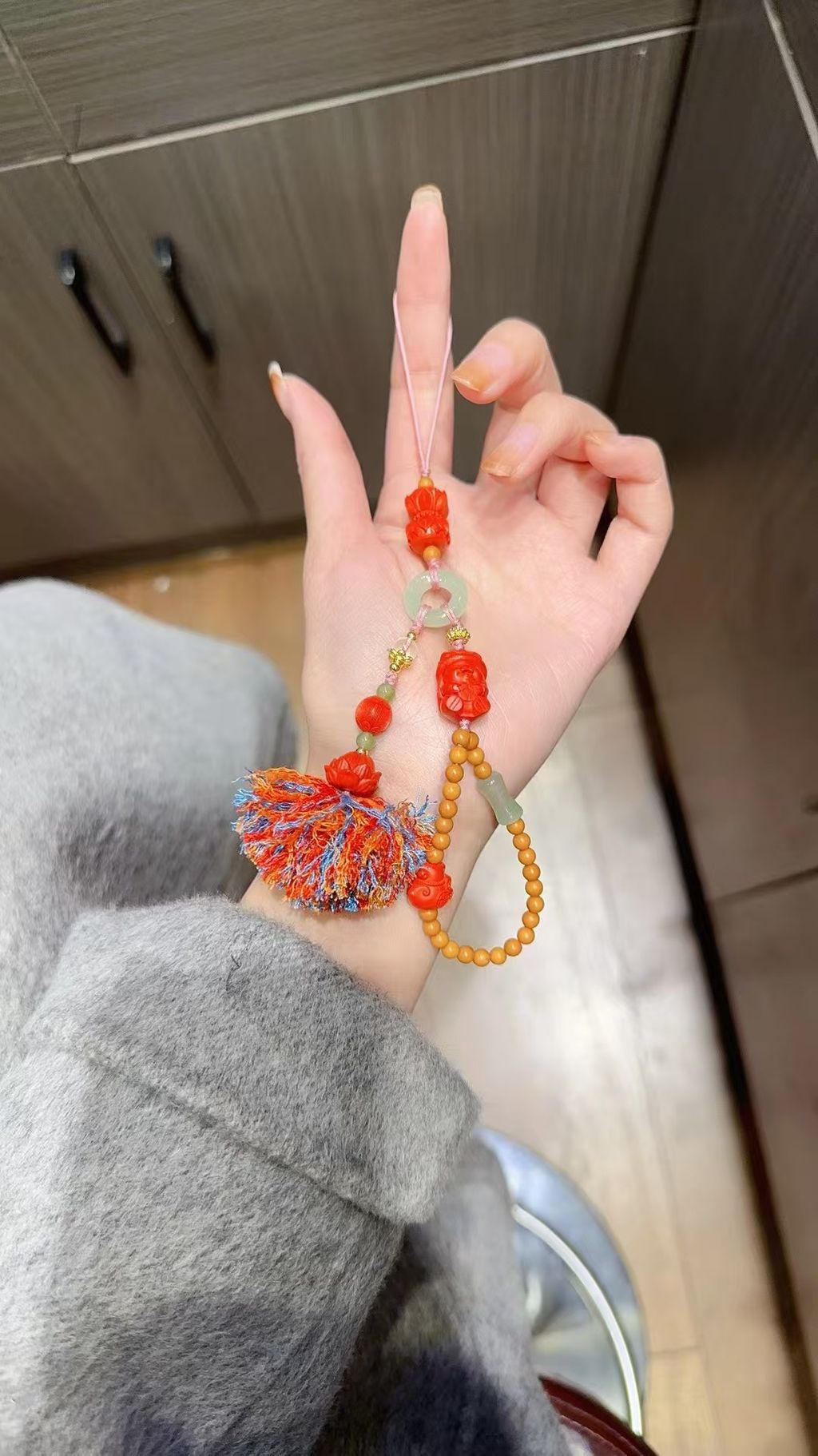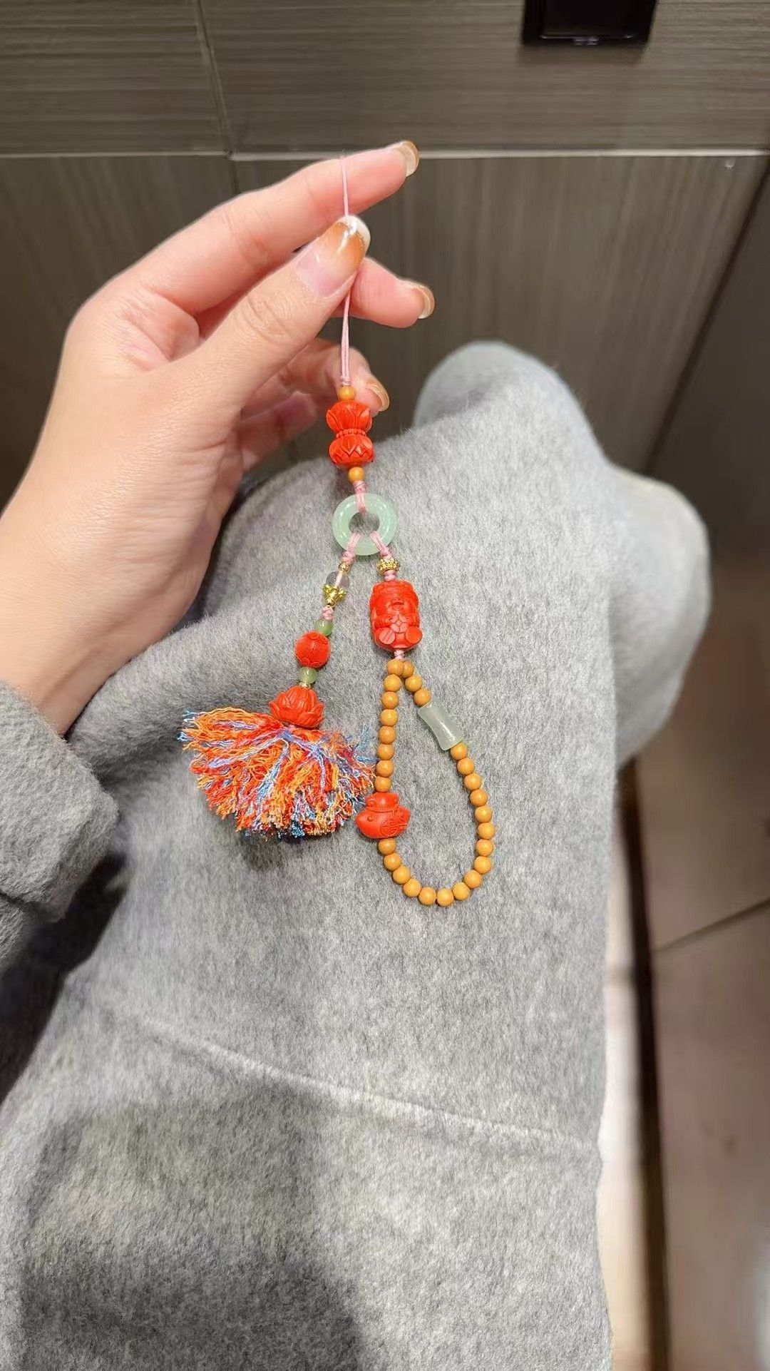 採用原礦硃砂礦砂壓磨而成,長期佩戴硃砂可辟邪轉運,安神靜氣 。