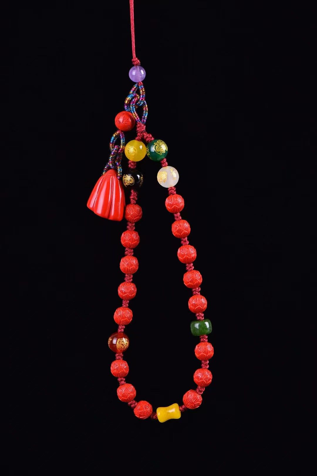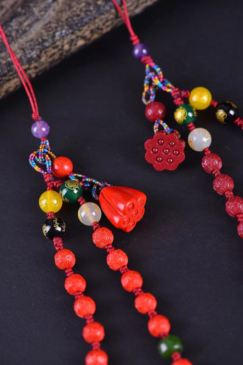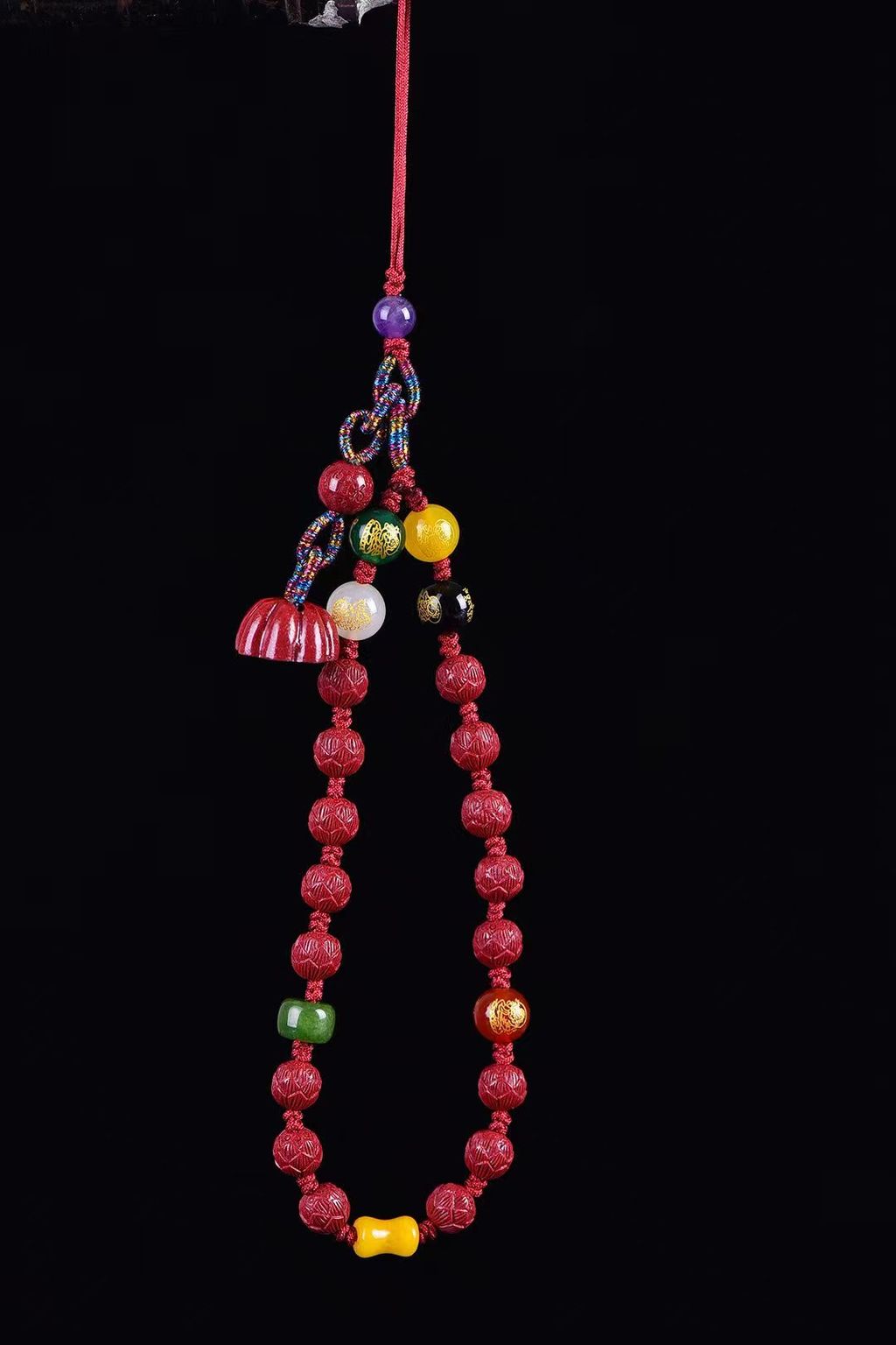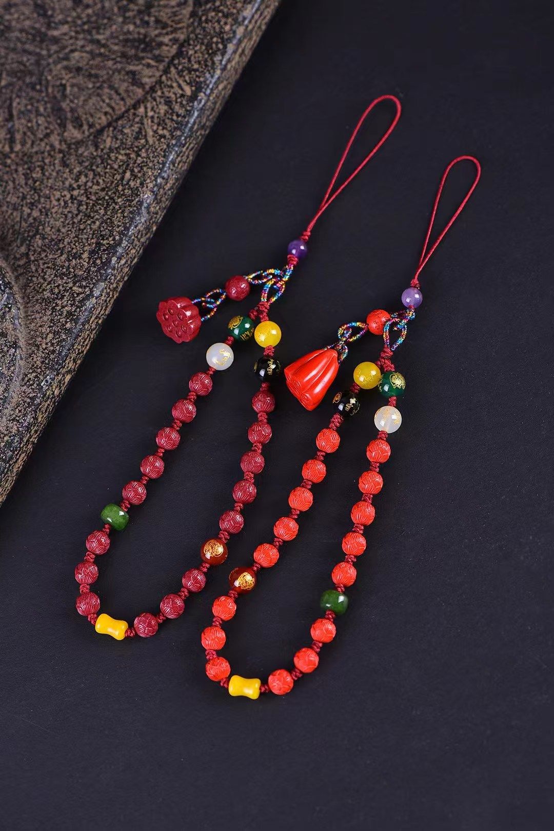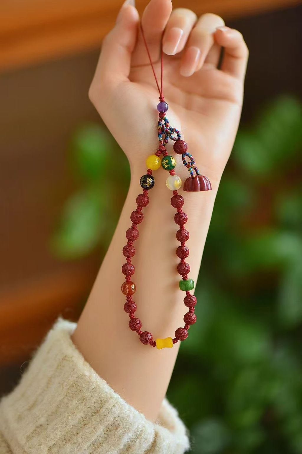 高含量硃砂天然紅砂紫砂 好運連連手機掛: