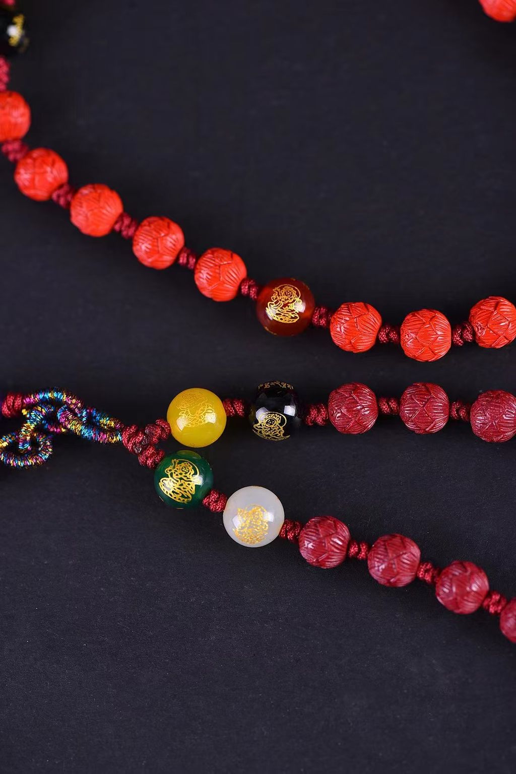 採用原礦硃砂礦砂壓磨而成,長期佩戴硃砂可辟邪轉運,安神靜氣。