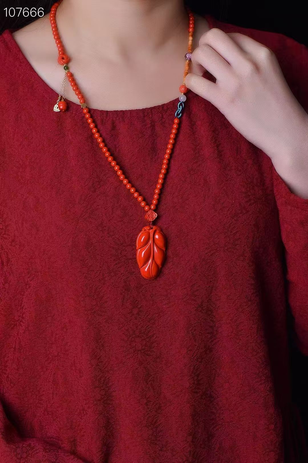 高含量硃砂天然紅砂金枝玉葉吊墜毛衣鏈