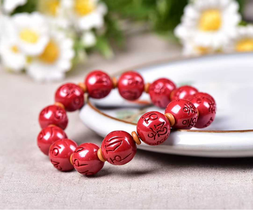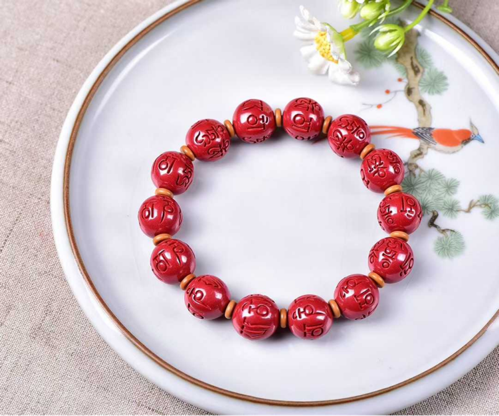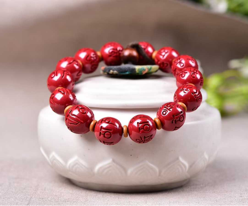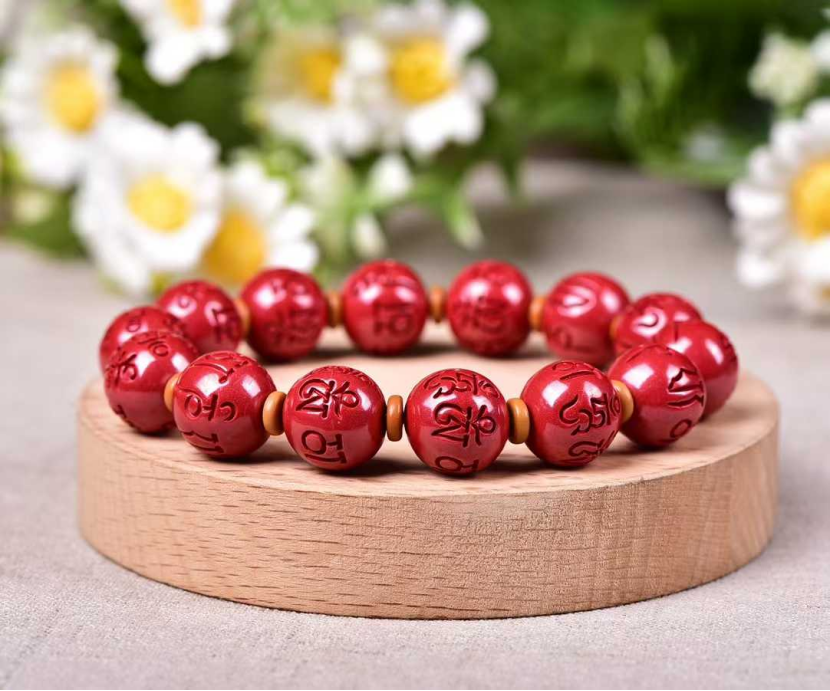 高含量硃砂帝王砂六字真言男士手串