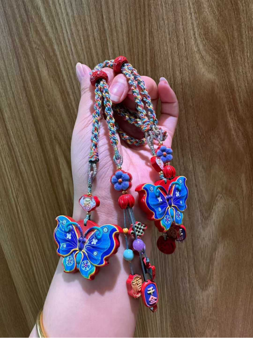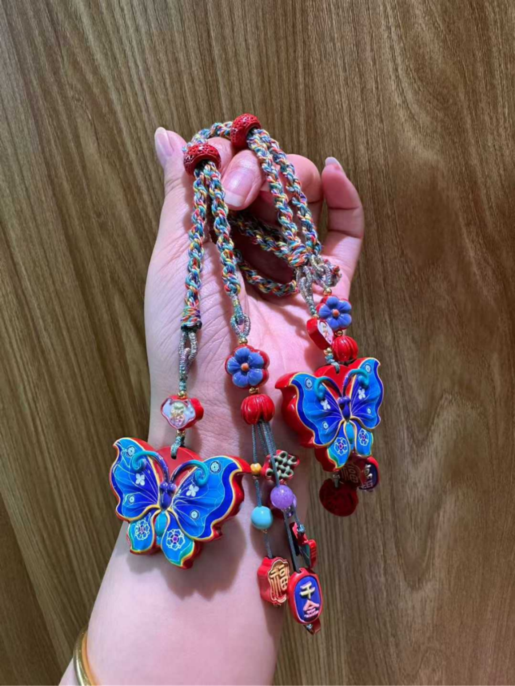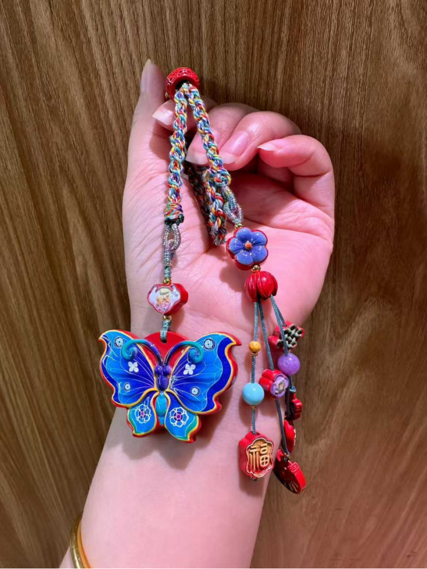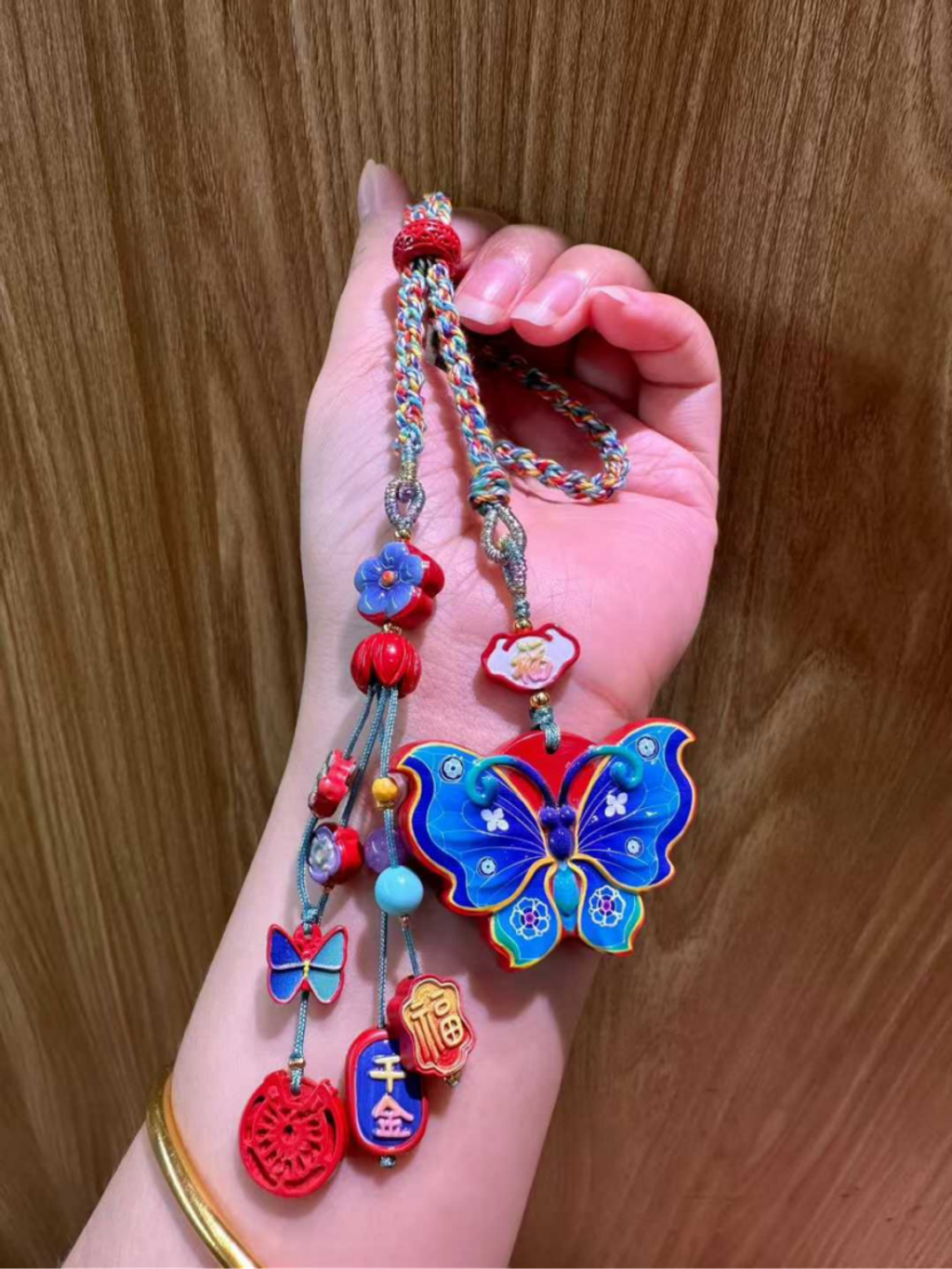 核心精緻彩繪工藝,蝴蝶圖案色彩鮮活、筆觸細膩,靈動別緻不撞款!高含量硃砂材質加持擋邪煞、護平安,車掛/包掛雙用設計,質感紮實不浮誇