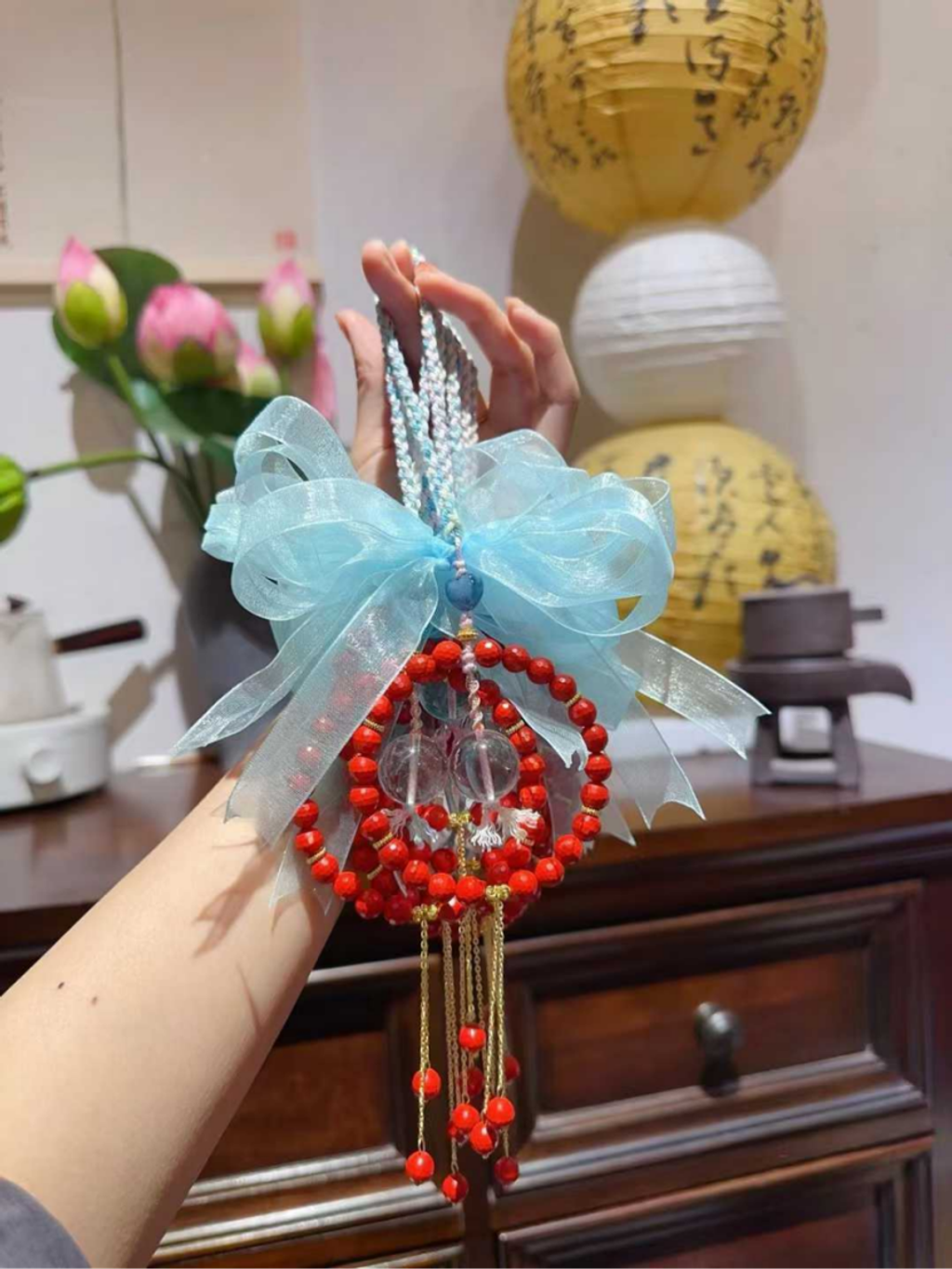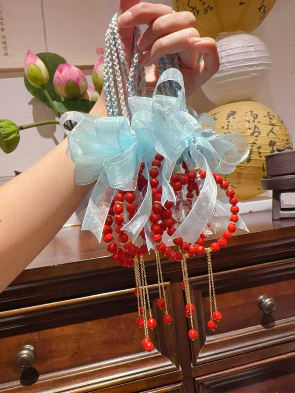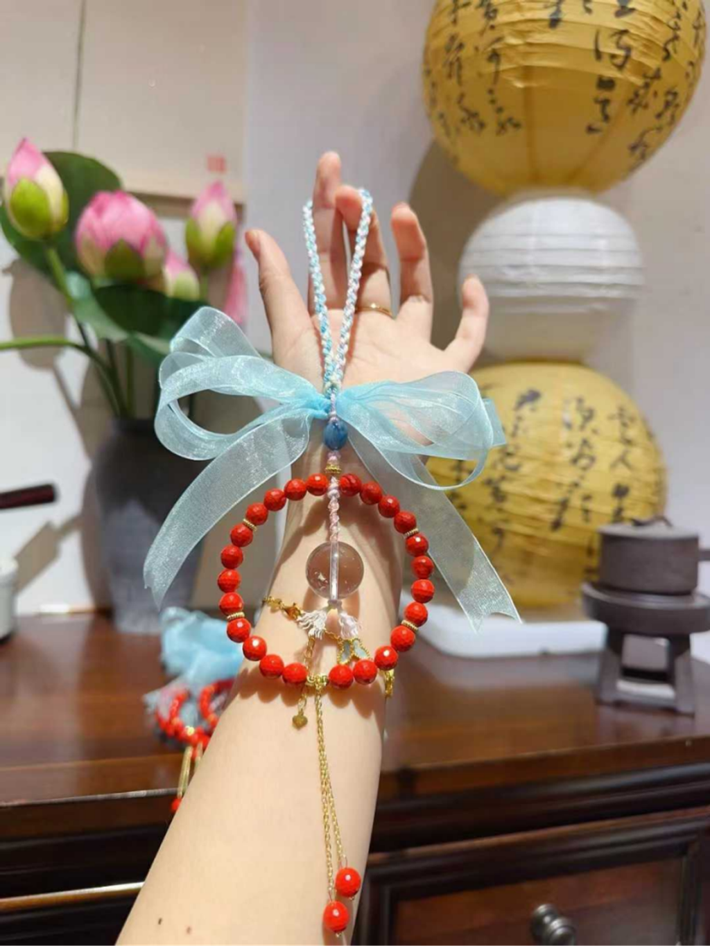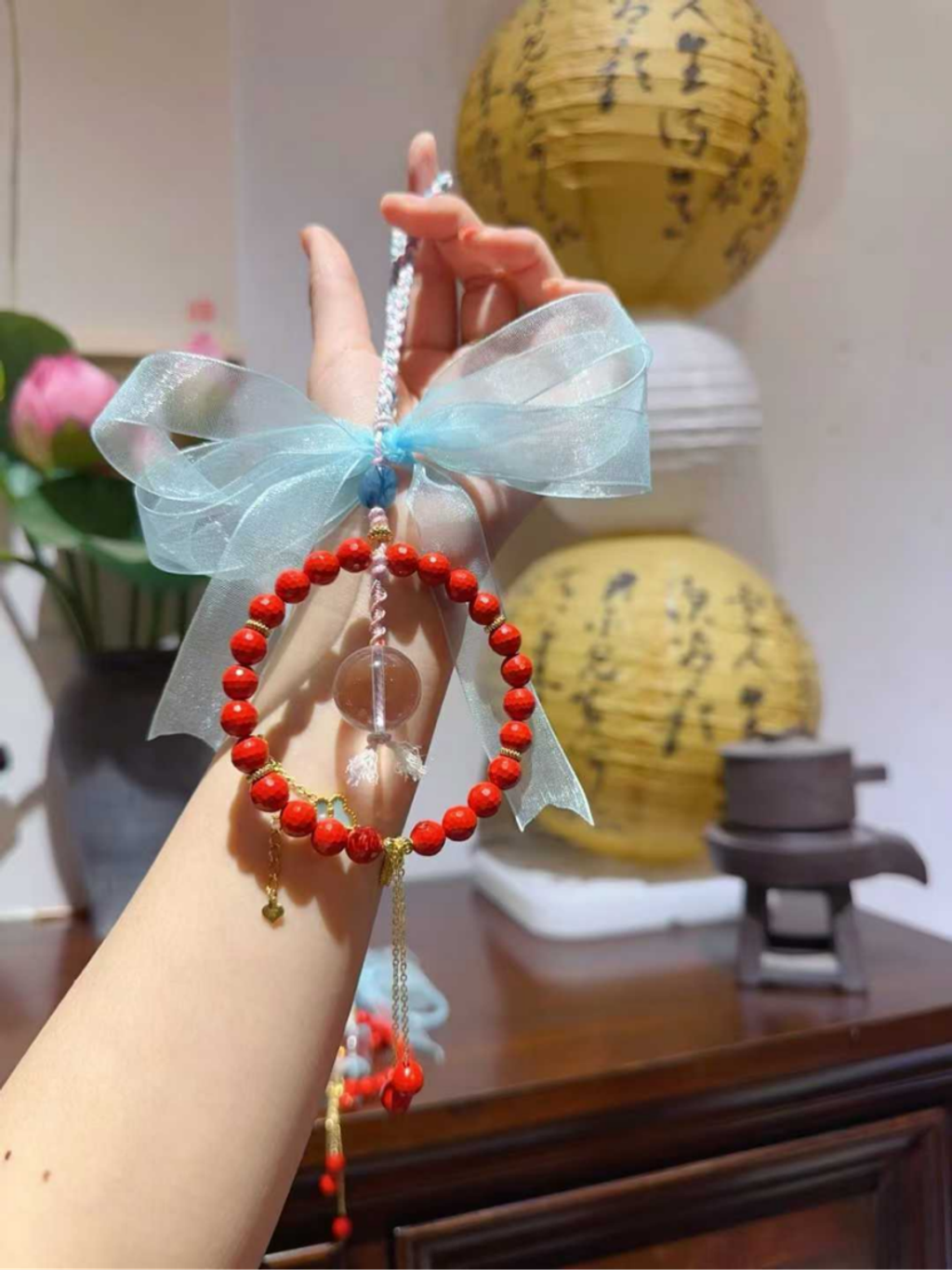 核心高含量硃砂紅砂+水晶搭配:兼具裝飾美感與硃砂護佑屬性,可辟邪轉運、安神靜氣