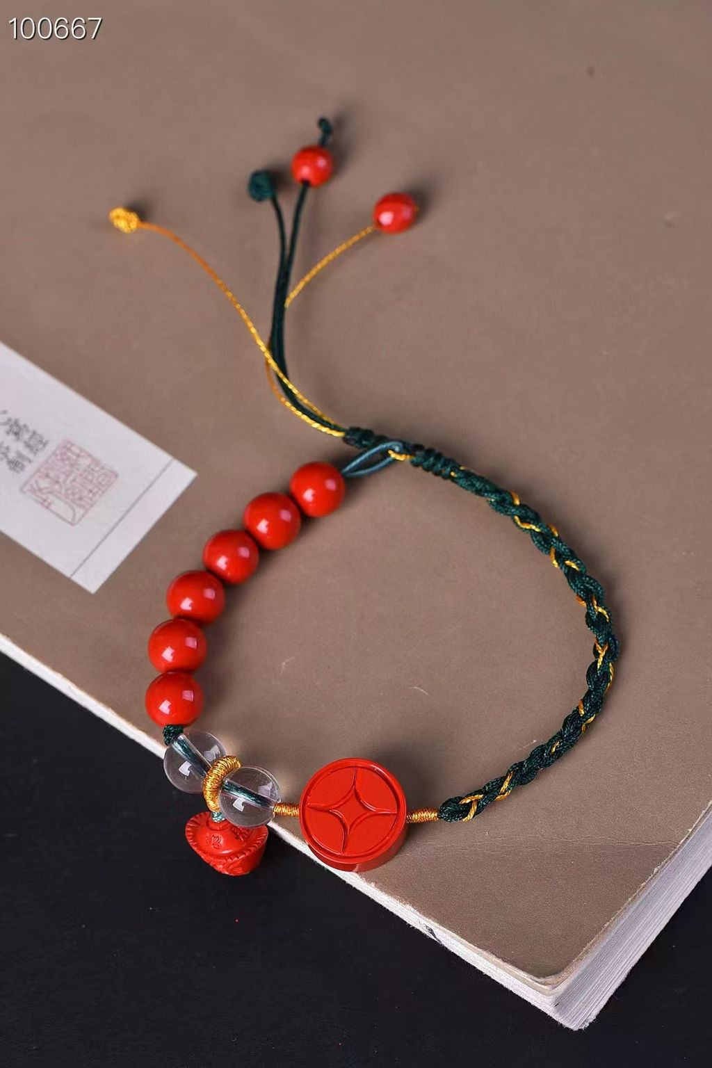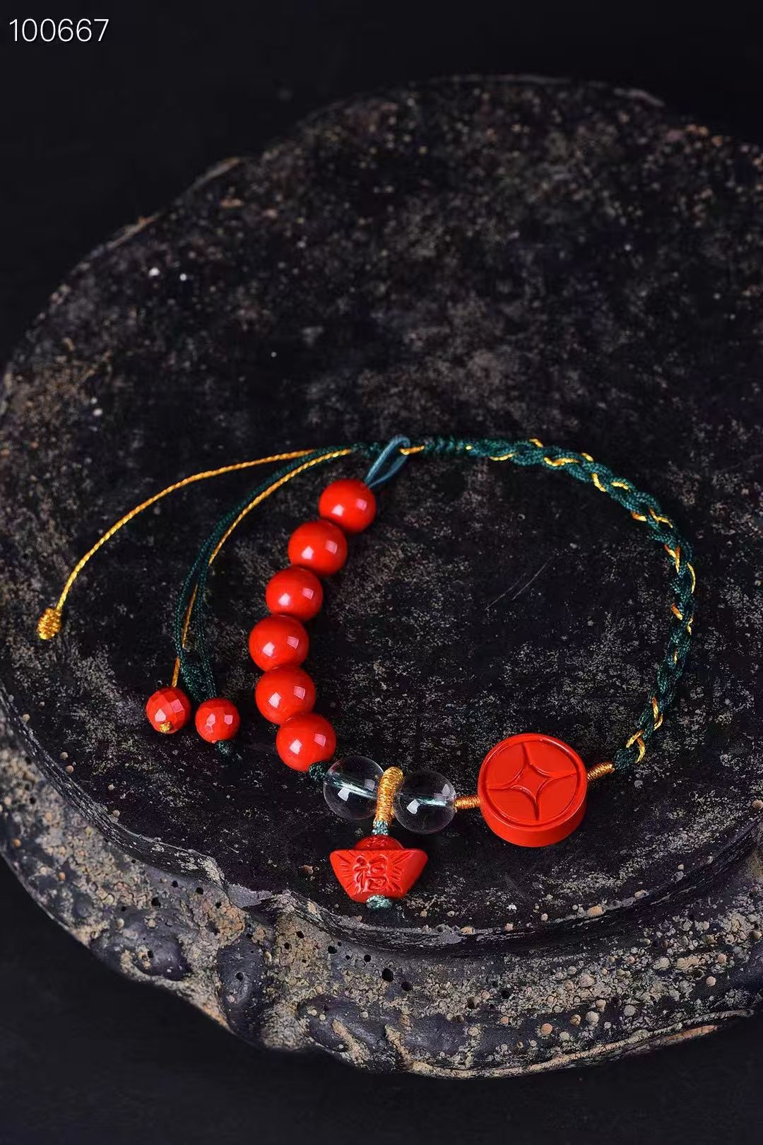 高含量硃砂紅砂錢幣單圈手鍊