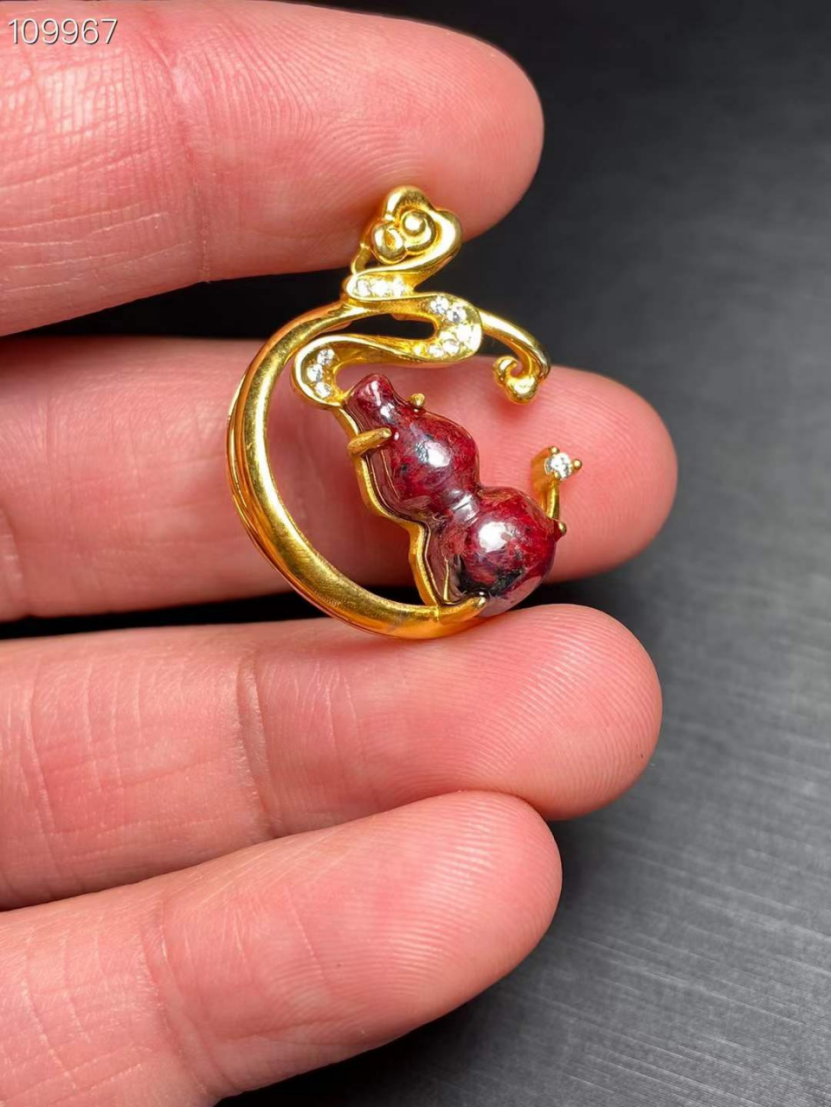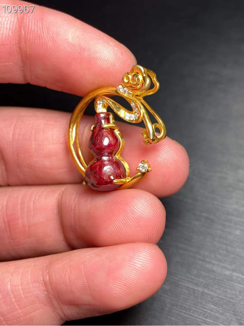 天然硃砂原礦透光葫蘆搭配純手工925純銀鍍金鑲嵌而成,男女士都可佩戴,長期佩戴硃砂可辟邪轉運,安神靜氣,尺寸23*29*9mm,總nv克重6.8克左右。nnannüan